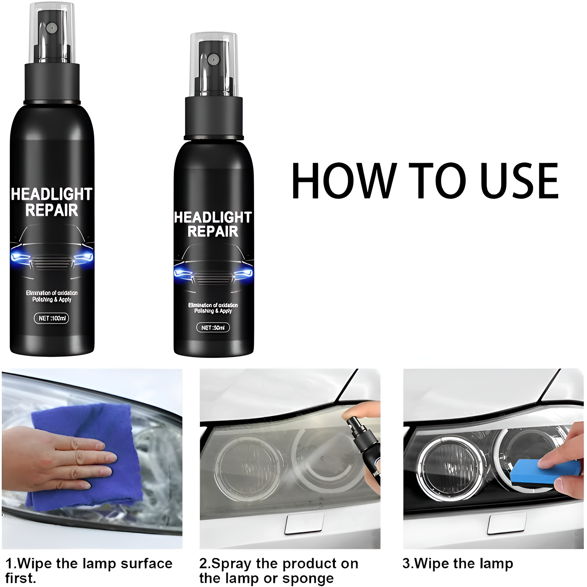 Say goodbye to foggy, yellowed, or scratched headlights. This Pack of 2 Headlight Repair Fluids & Scratch Removers is designed to bring back clarity, improve nighttime visibility, and enhance the overall look of your vehicle — all from the comfort of your home.